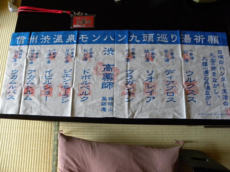 以前にも書きましたが、一応説明しますと、昨年末から今年年始にかけて開催された、渋温泉とモンスターハンターポータブル3rdとのコラボ企画が、好評につき今夏も開催となったわけです。
