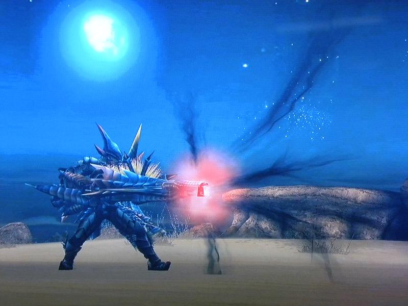 あとカジキマグロとかサボテンとかポリタンとかの、「遊び」系装備もあるといいなぁ。渡来ではイッカクが釣れるので、ちょっと期待してます。最近レッドビートを振り回していたら、実はレウスの鳴き声がしているってことに気がつき、なんかあのマグロをぶん回したときの「ザッパーン!」て音が恋しくなりました(笑)意外と下位では強かったカジキマグロ・・・切れ味ないけど。あれでドスガレオスとか倒してたもんなぁ。